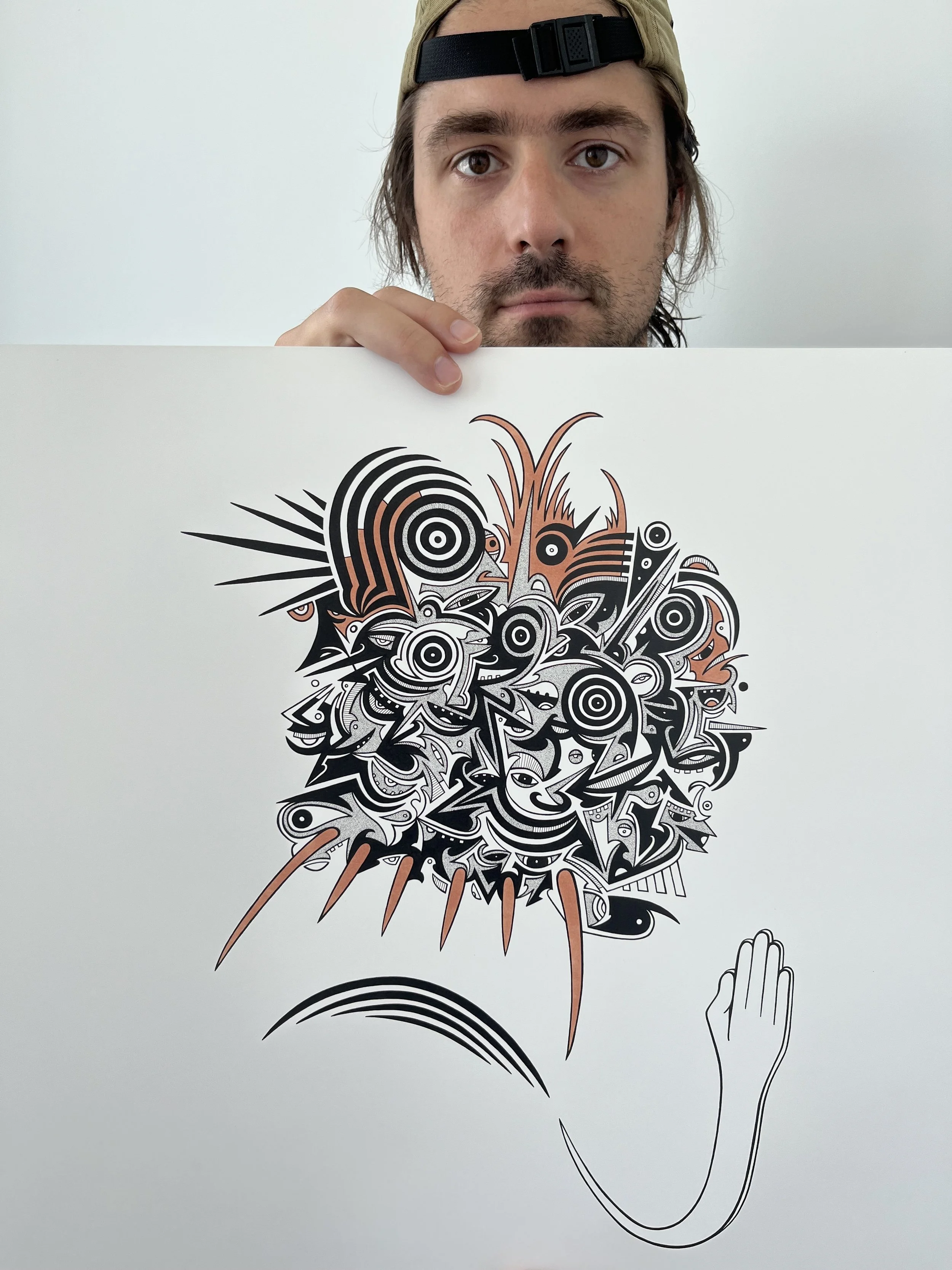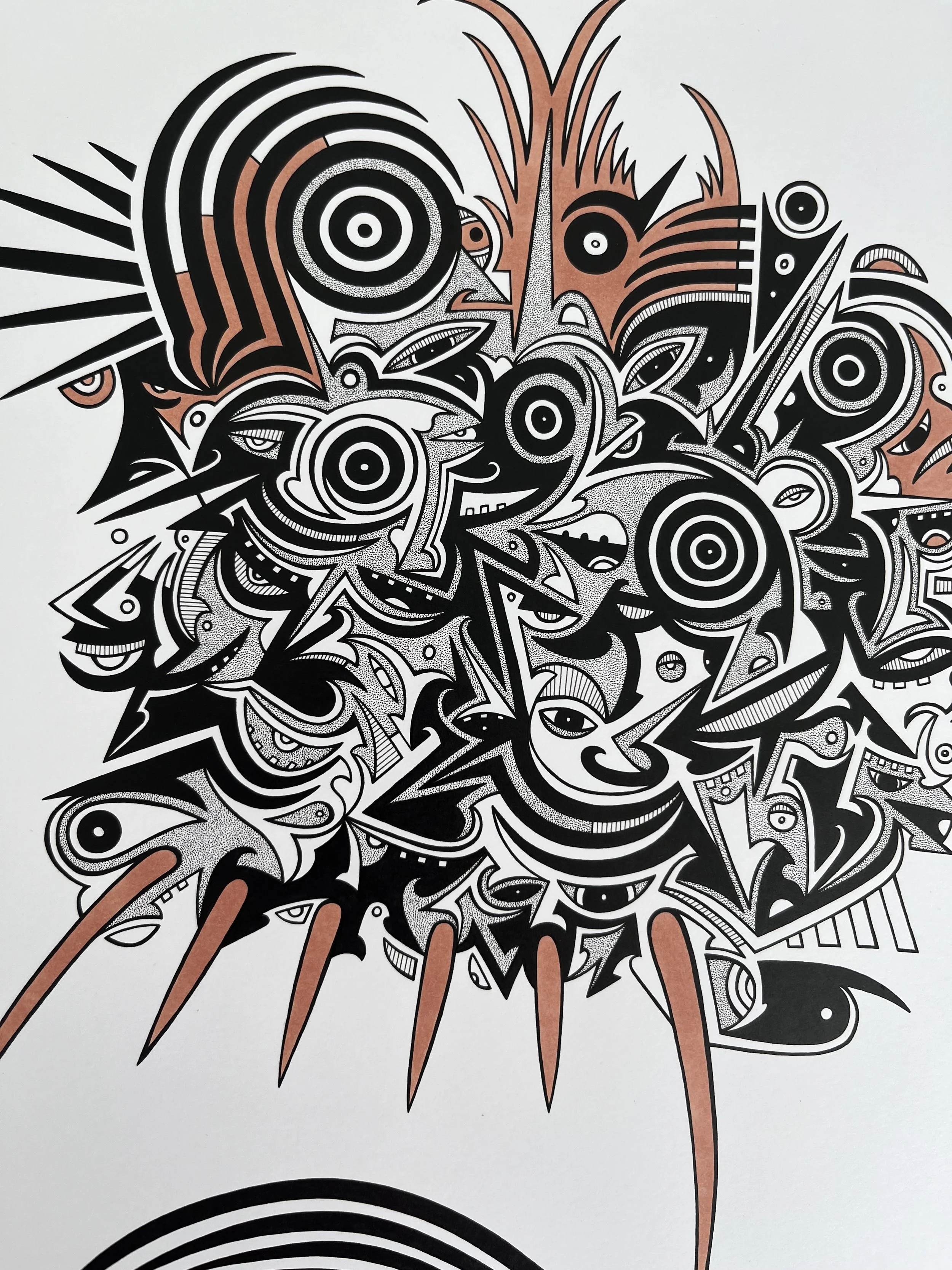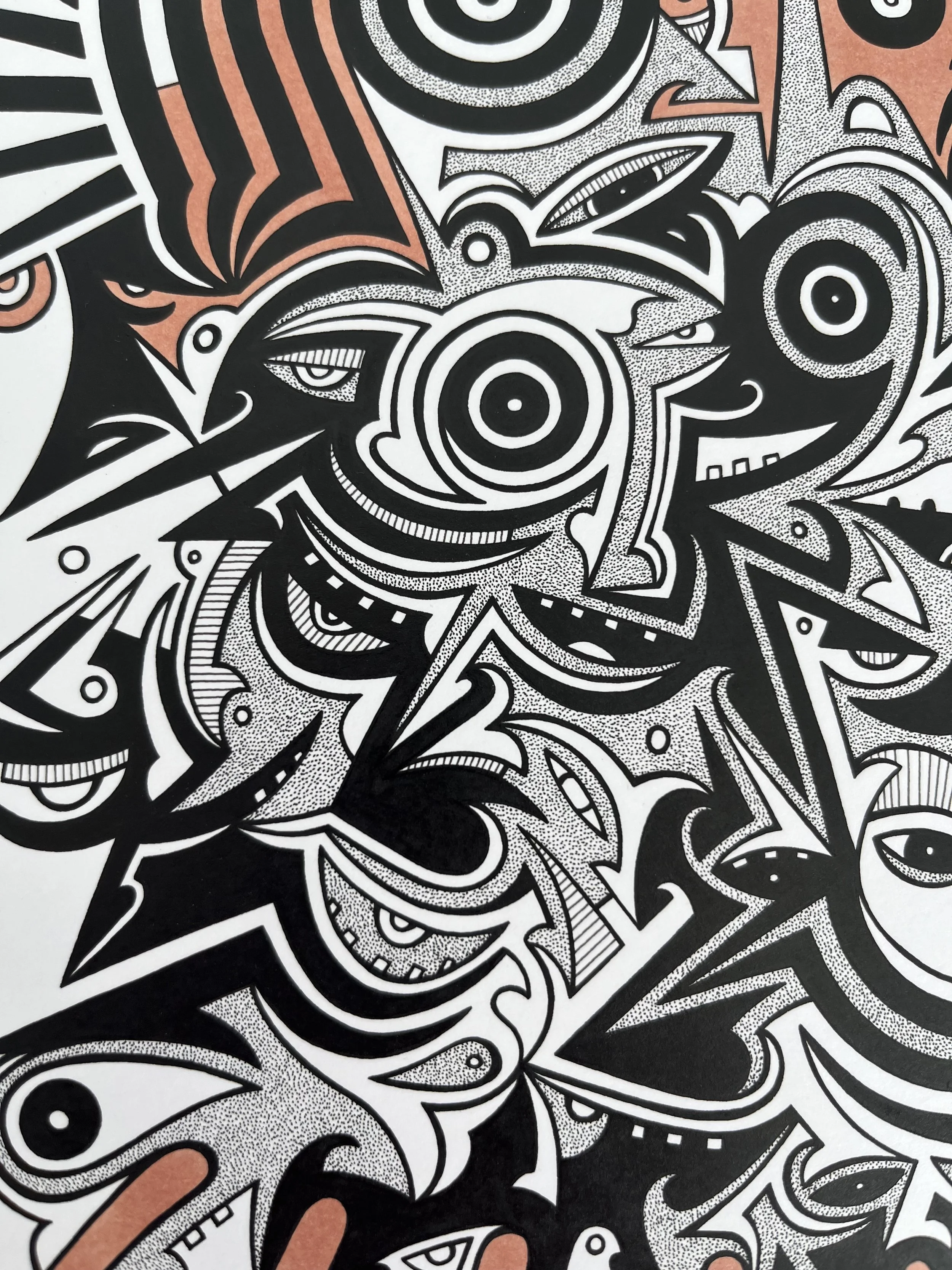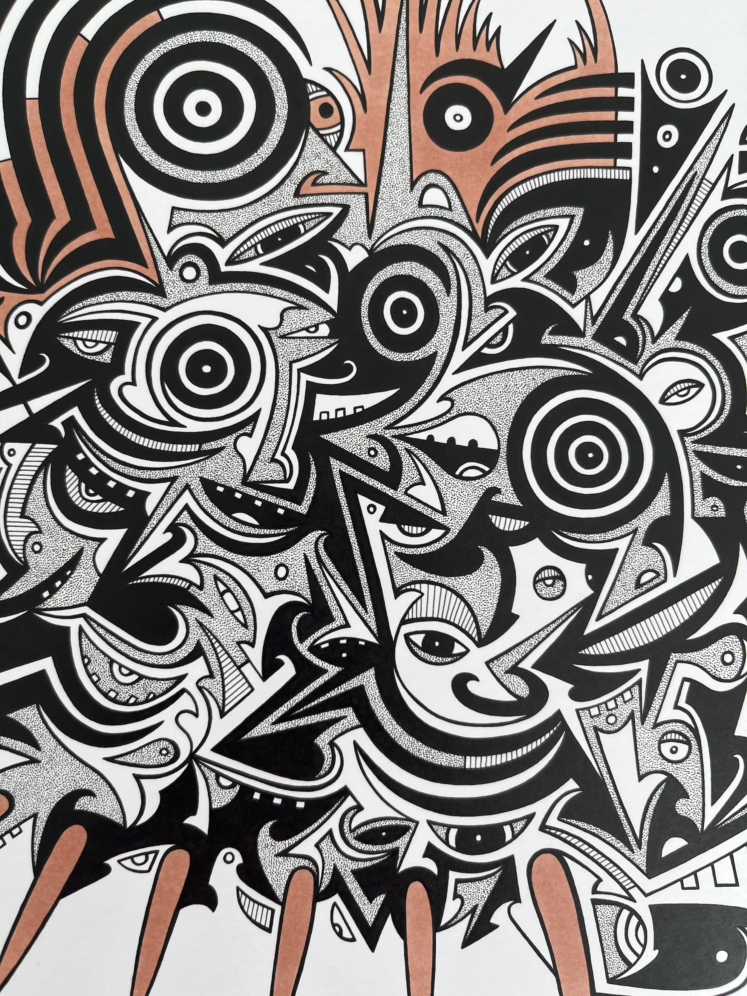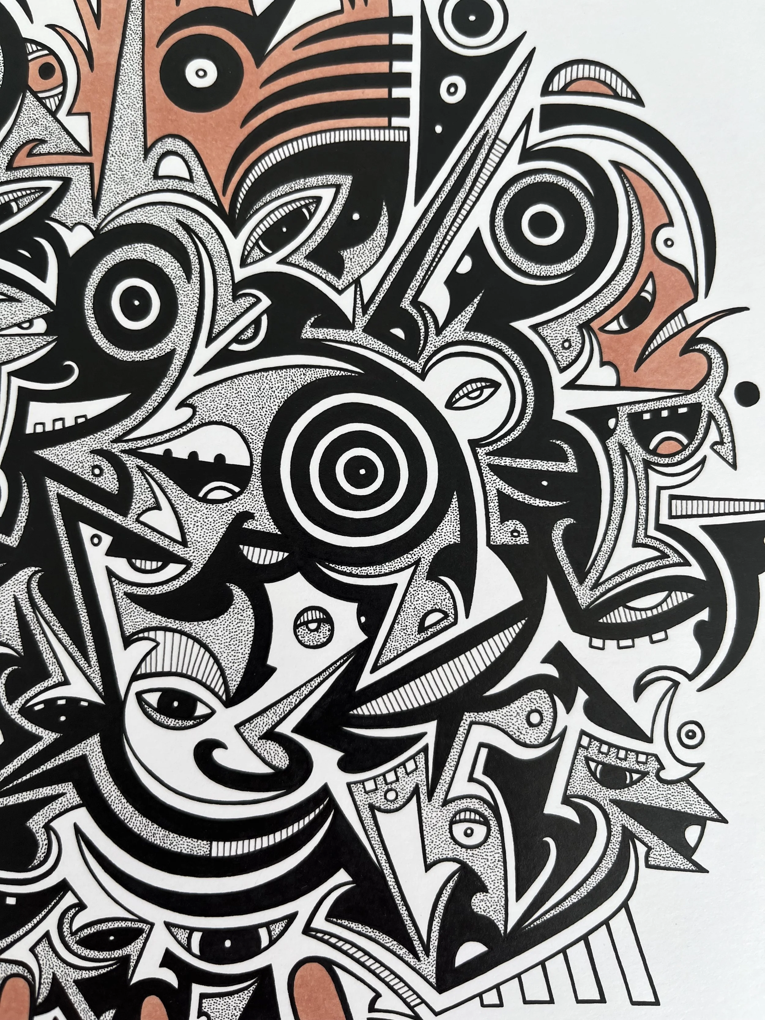 “Hunger” 2025 $2,750.00 18×24in. Ink on paper. Framed. Available Originals › “Hunger” 2025 Add To Cart Added! 18×24in. Ink on paper. Framed.